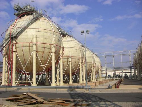 3、球罐安全可靠。球罐焊缝好,不易泄露,相对立式或卧式储罐更加安全,卧式储罐作为压力容器不能超过200立方,而球罐的体积可以做的更大,却更加安全可靠。