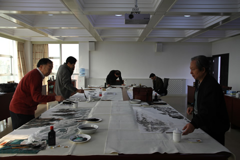 10月22日,公司邀请山东省书画名家董风基、马金忠、张乐毅等一行6人齐聚金能,现场挥毫泼墨,或书,或画,写意新版金能文化。