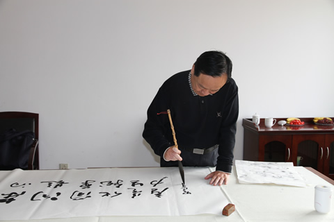 公司会议室内,墨香飘逸,文化醇浓。书画名家们凝神运气,飞笔挥毫,以字传情,以画达意。书写者,有的刚劲有力而又行云流水,一气呵成,有的刚柔相济、遒劲雄浑而又透出幽幽书卷气,作画者,有的大气磅礴,有的温婉细腻,但均惟妙惟肖,形象逼真。青松迎客,骏马奔腾,青山蕴秀,大河汹涌,悄然跃然纸上,为金能人送上了一份 “文化盛宴”。